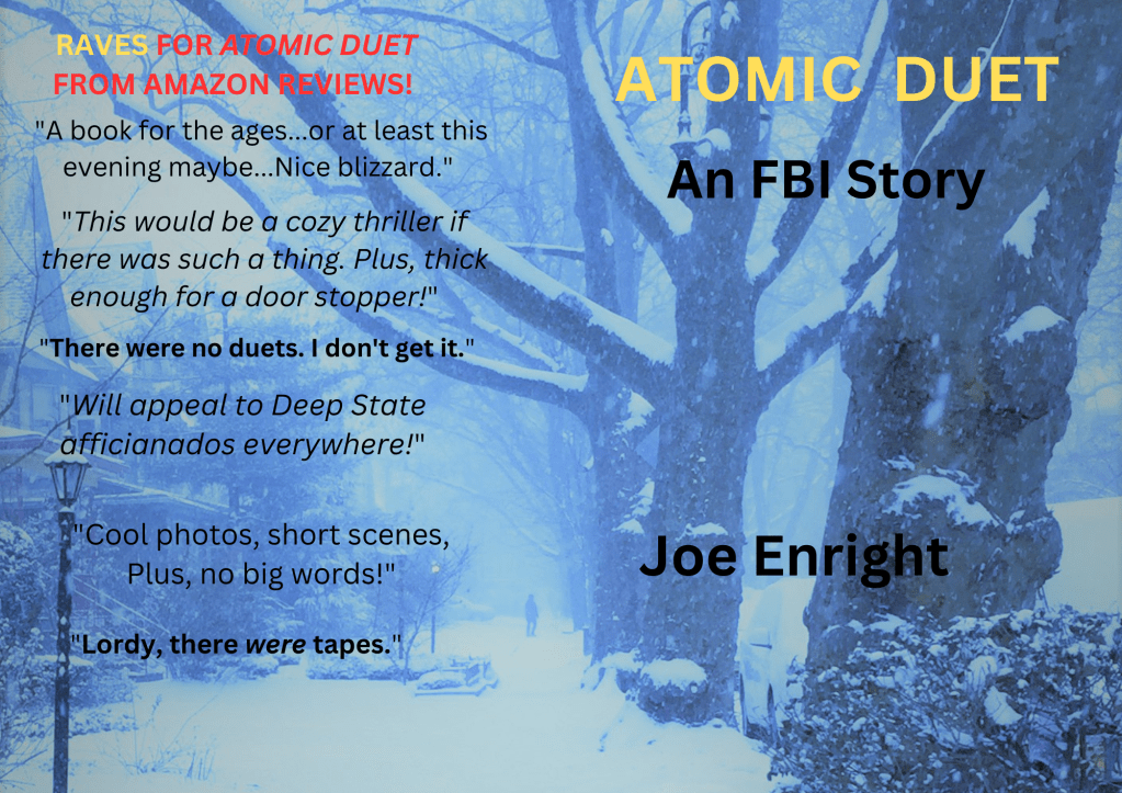 “26 Fed” – as every inhabitant called it – was the tallest federal building in the country, its 41 stories and adjacent plazas occupying a swath of pricey acreage along lower Broadway. Quinn took an elevator up from the Bureau’s basement parking area to the immaculately clean and spacious lobby. He passed a bulging Toys for Tots box outside the Fed Kids Center and remembered Kathy bending over to pick up a teddy bear trying to make a break for it. She smiled and he was smitten. He frequently thought about Kathy as he passed Fed Kids. But it was usually a brief fleeting mental nod, not a full-blown emotional flashback…The thought of abandoning all these familiar haunts is starting to have an impact that alcohol can’t deaden.